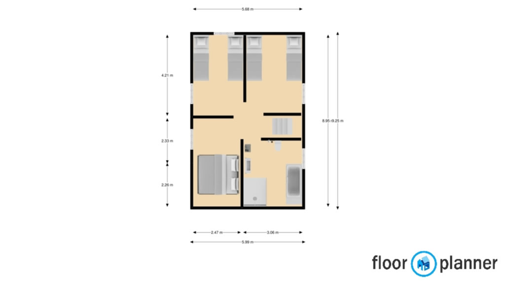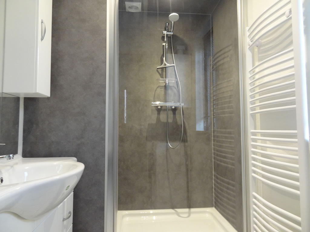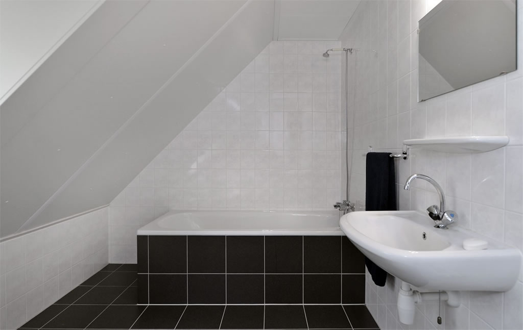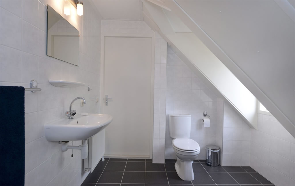 toilet begane grond, badkamer 1e verdieping met bad, en 2e toilet, begane grond extra doucheruimte met douche en wastafel.