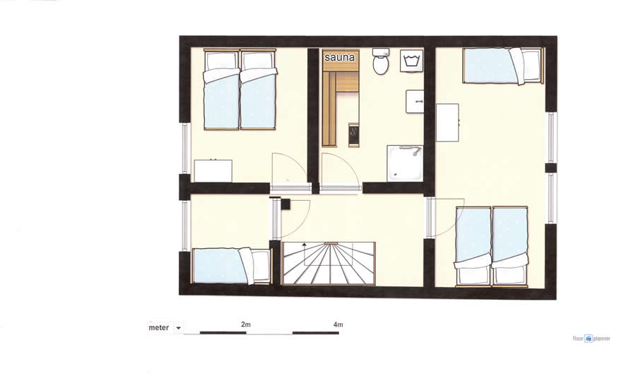 begane grond 1 x 2-persoons, 1e verdieping 1 x 3-persoons, 1 x 2-persoons, 1 x 1-persoons, dekbedden.