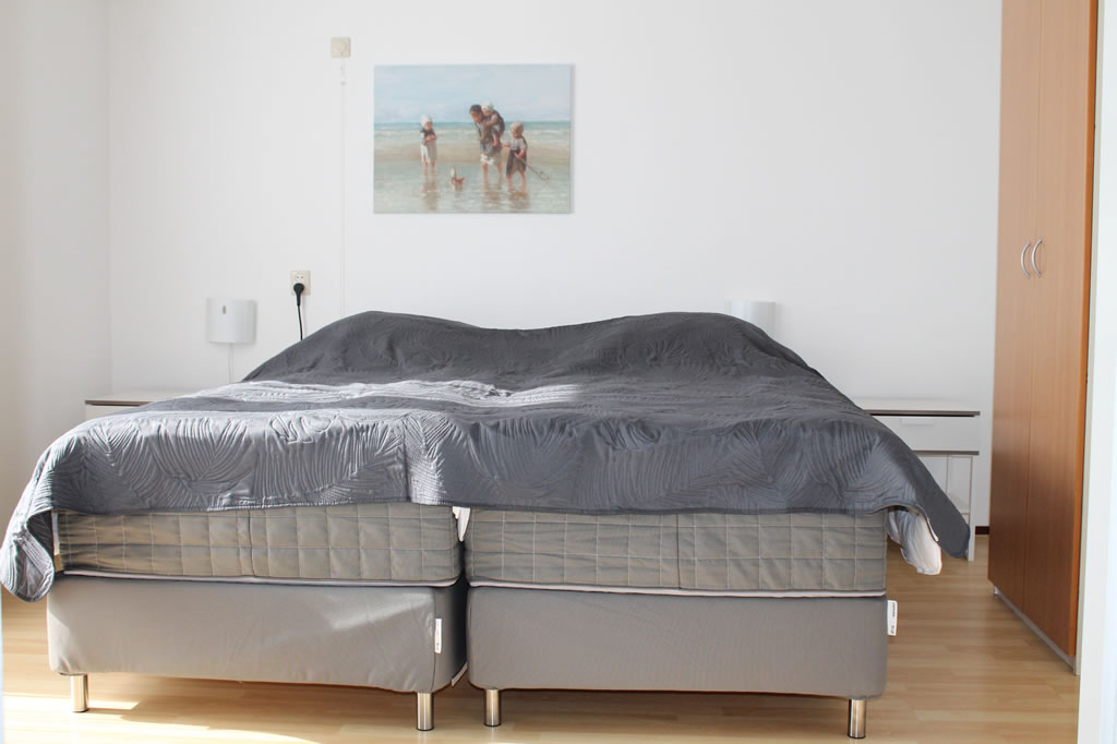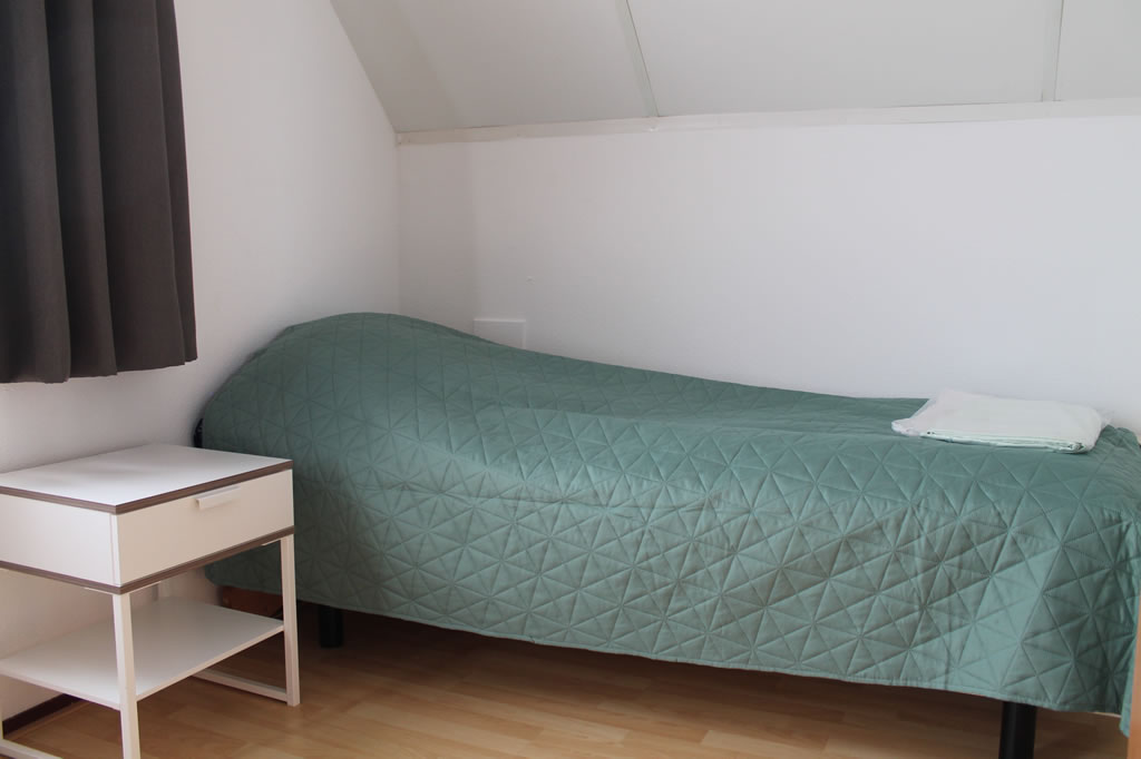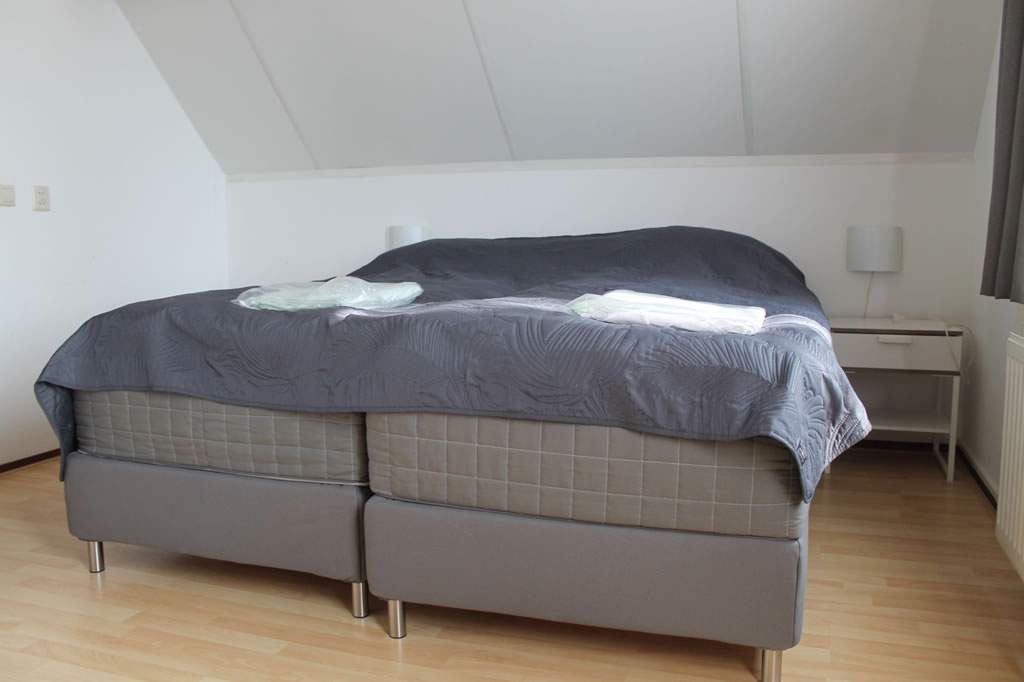 begane grond 1 x 2 persoons, 1e verdieping, 1 x 2 persoons, 1 x 1 persoons, 1 x 2 persoons en 1 x 1 persoons, dekbedden.